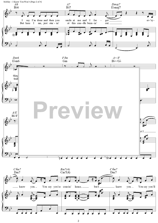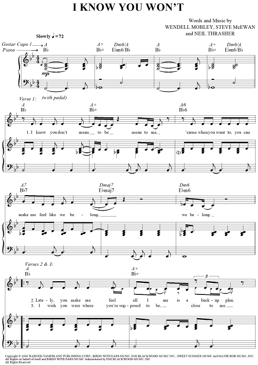 Digital Sheet Music for I Know You Won't by Wendell Mobley, Neil Thrasher, Steve McEwan, Carrie Underwood scored for Piano/Vocal/Chords; id:444671