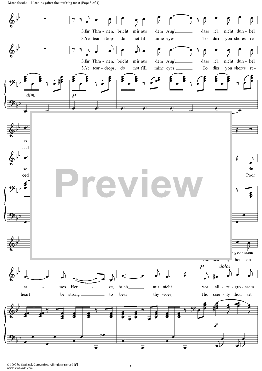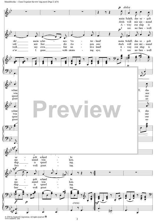Digital Sheet Music for I lean'd against the tow'ring mast by Felix Mendelssohn scored for Vocal Duet/Piano; id:266339