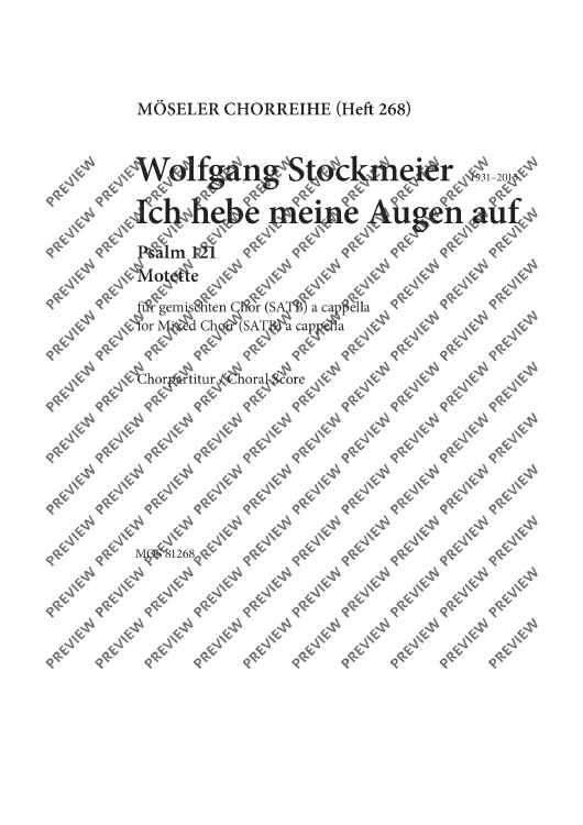 Digital Sheet Music for I lift up my eyes - Choral Score by Wolfgang Stockmeier scored for Mixed Choir (satb); id:501780