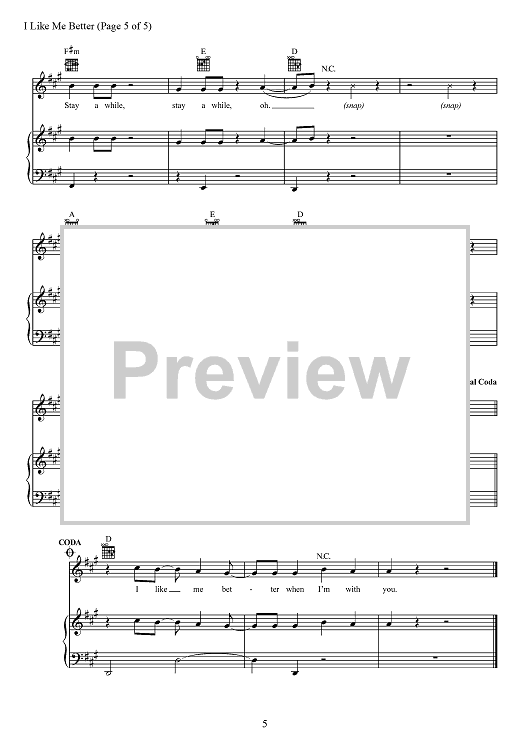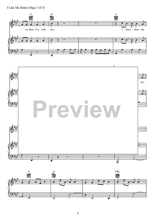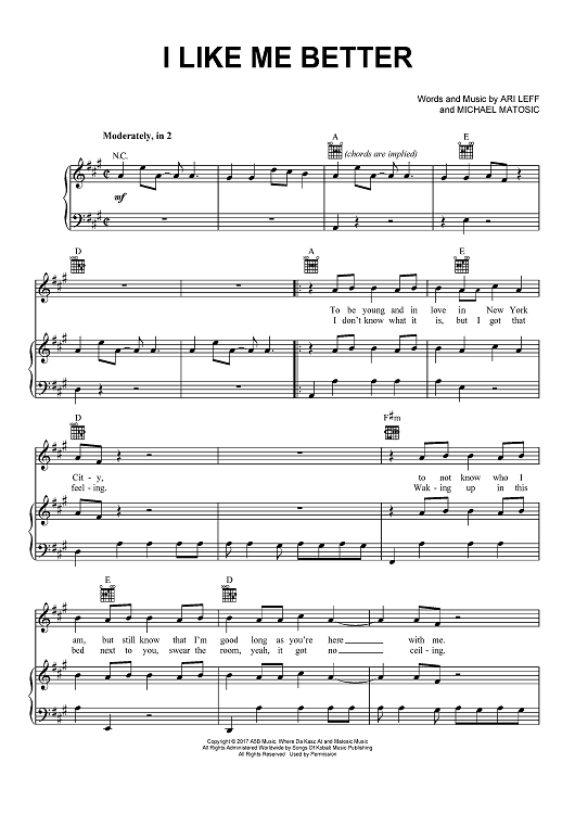 Digital Sheet Music for I Like Me Better by Ari Leff, Lauv, Michael Matosic scored for Piano/Vocal/Chords; id:467833