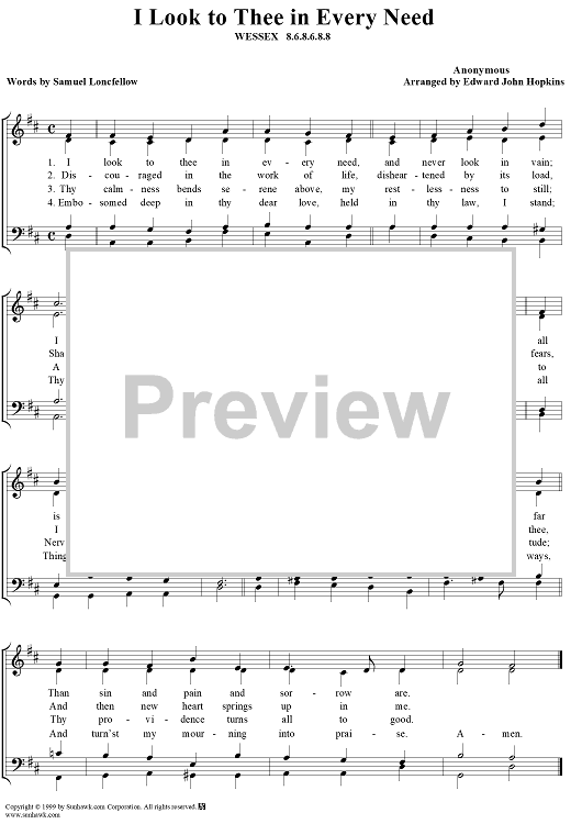 Digital Sheet Music for I Look to Thee in Every Need by Edward J. Hopkins scored for Four-part Mixed Chorus; id:266362