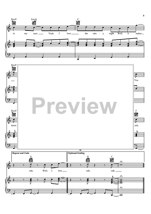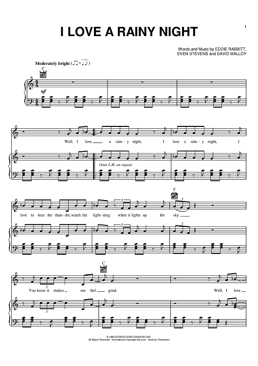 "I Love A Rainy Night" Sheet Music by Eddie Rabbitt