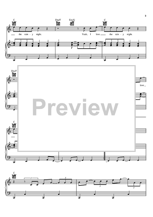 Digital Sheet Music for I Love A Rainy Night by David Malloy, Even Stevens, Eddie Rabbitt scored for Piano/Vocal/Chords; id:381340