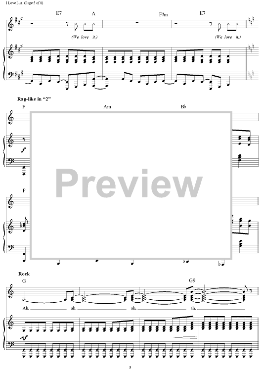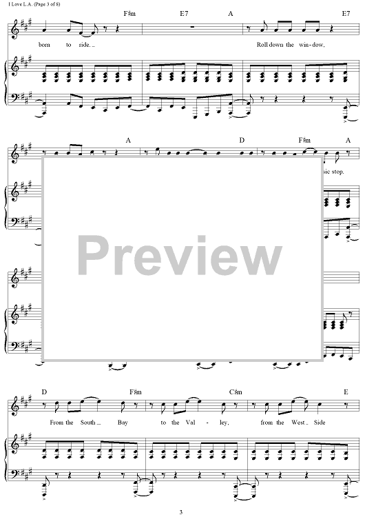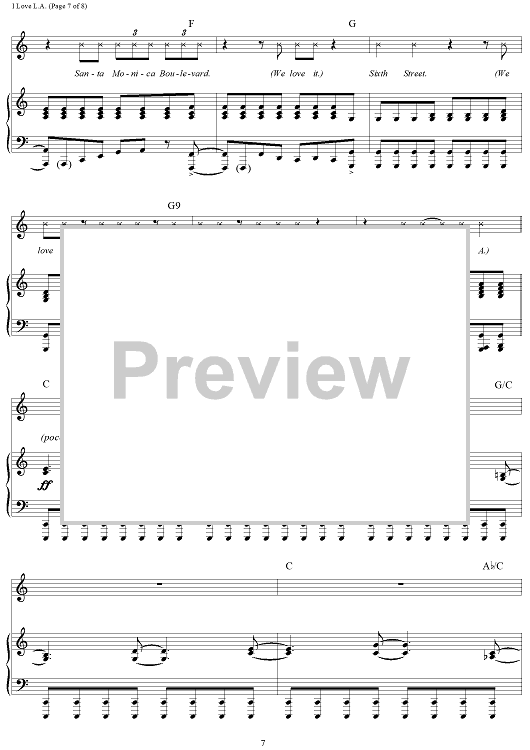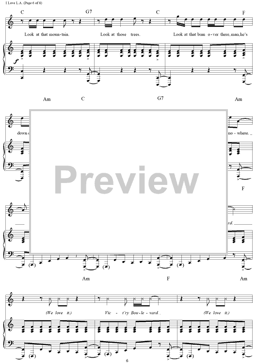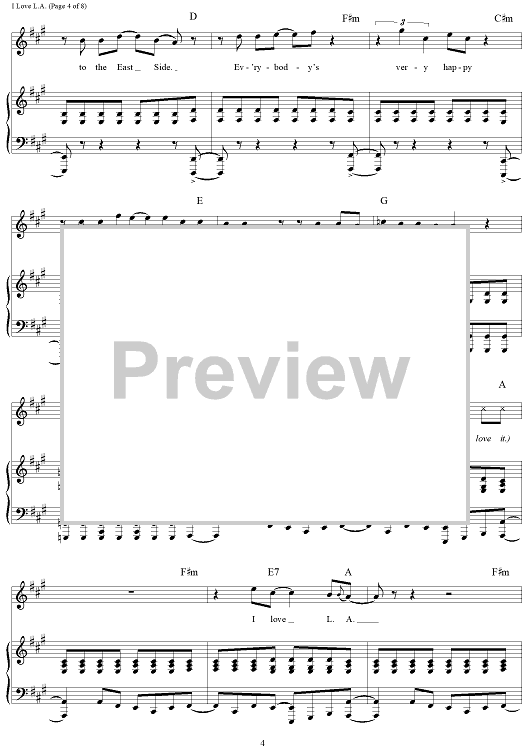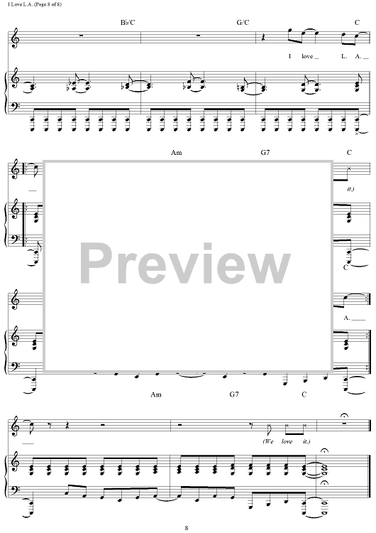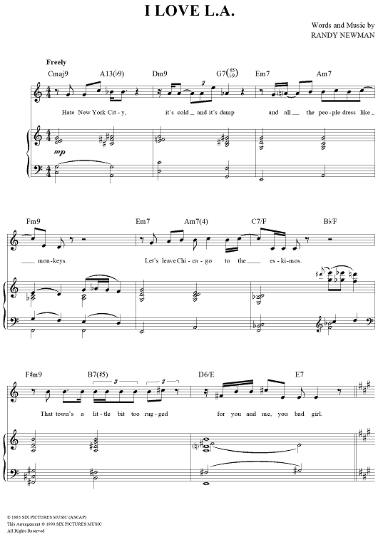 Digital Sheet Music for I Love L.A. by Randy Newman scored for Piano/Vocal/Chords; id:253267