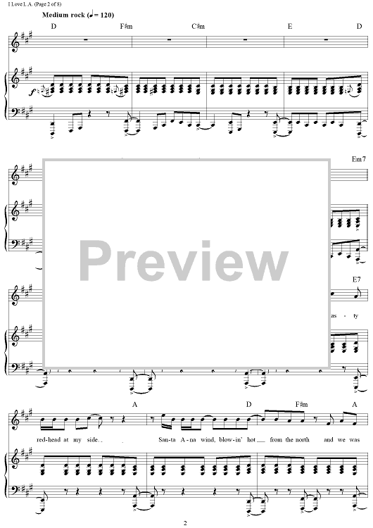 "I Love L.A." Sheet Music by Randy Newman