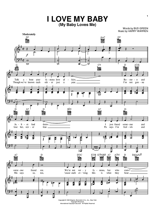 Digital Sheet Music for I Love My Baby (My Baby Loves Me) by Harry Warren, Bud Green scored for Piano/Vocal/Chords; id:383069