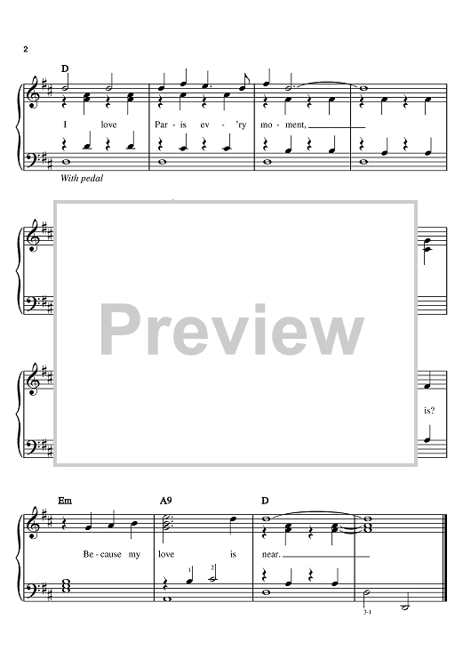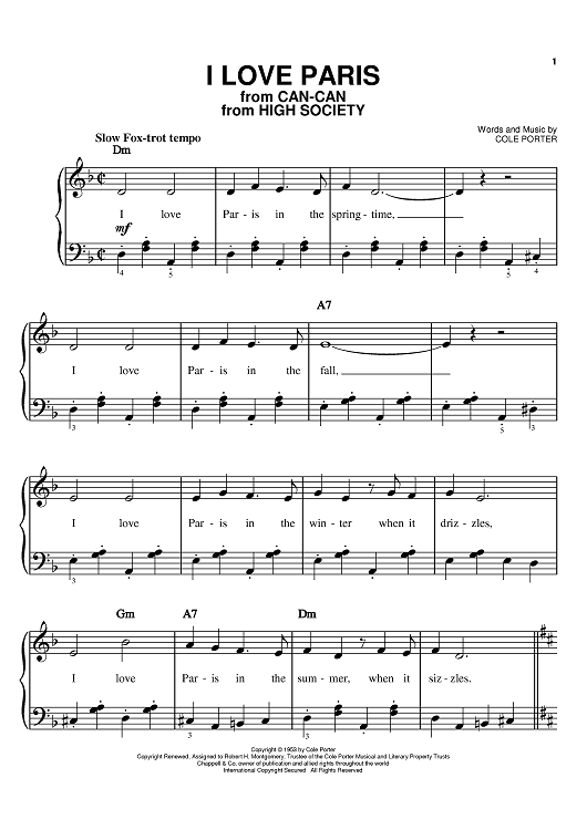 Digital Sheet Music for I Love Paris by Frank Sinatra, Cole Porter scored for Easy Piano; id:373946