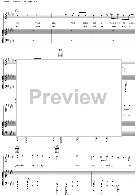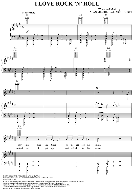 Digital Sheet Music for I Love Rock 'n' Roll by Alan Merrill, Jake Hooker scored for Piano/Vocal/Chords; id:119969