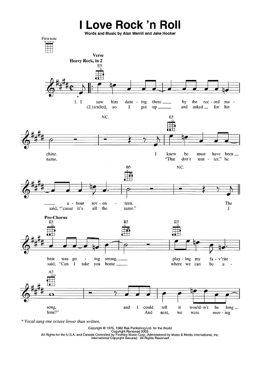 Digital Sheet Music for I Love Rock 'n Roll by Alan Merrill, Jake Hooker scored for Ukulele/Vocal; id:465362