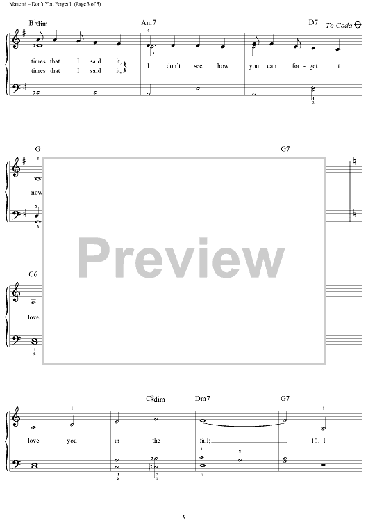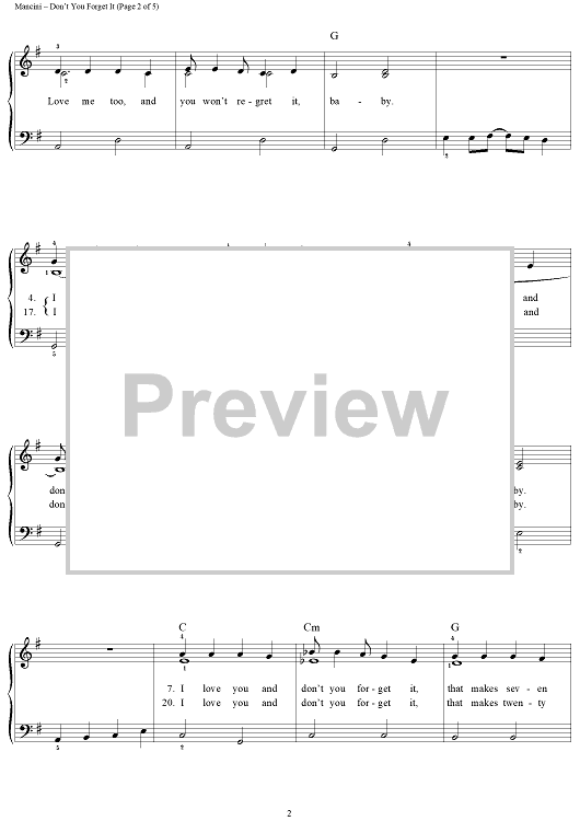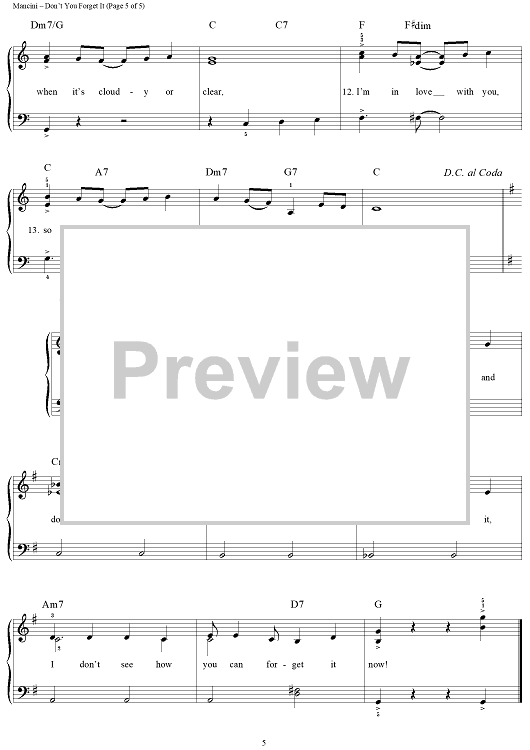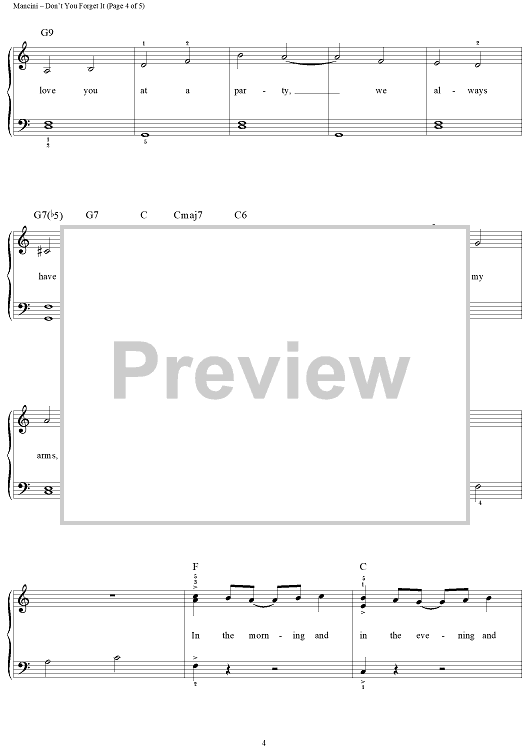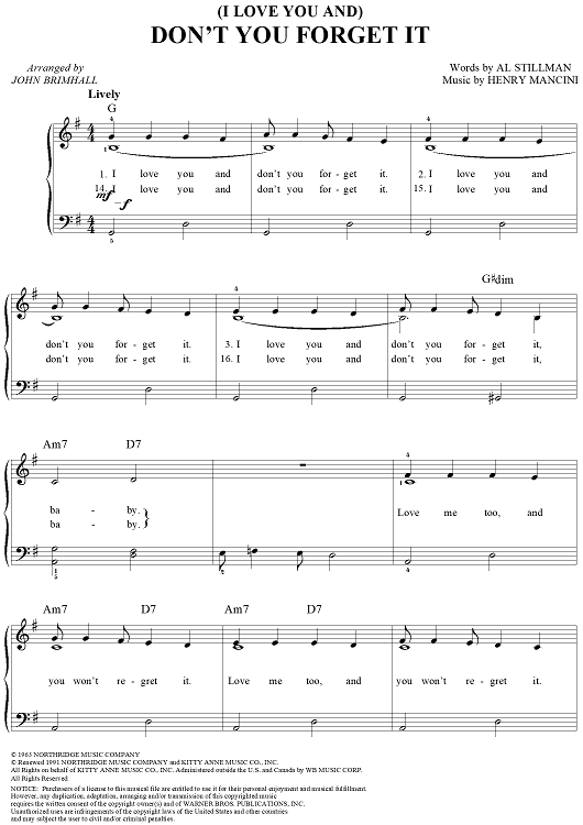 Digital Sheet Music for (I Love You And) Don't You Forget It by Henry Mancini, Perry Como, Al Stillman, John Brimhall scored for Easy Piano/Vocal; id:120424