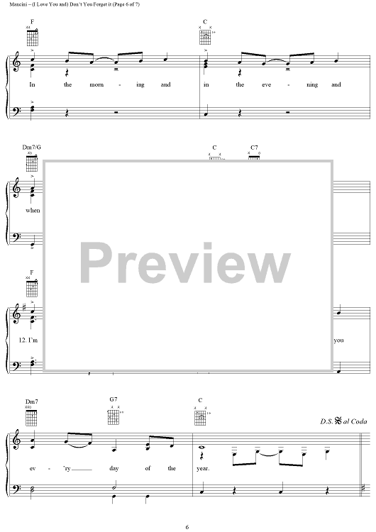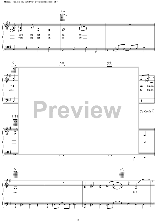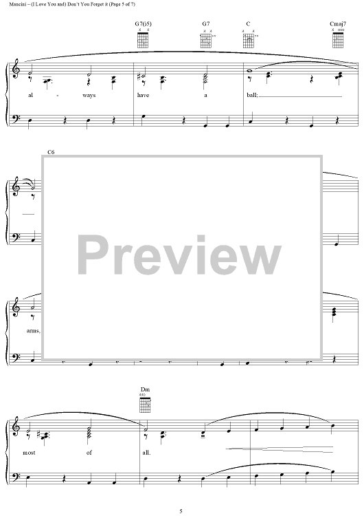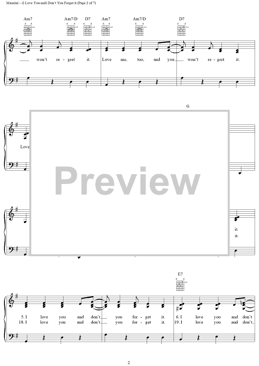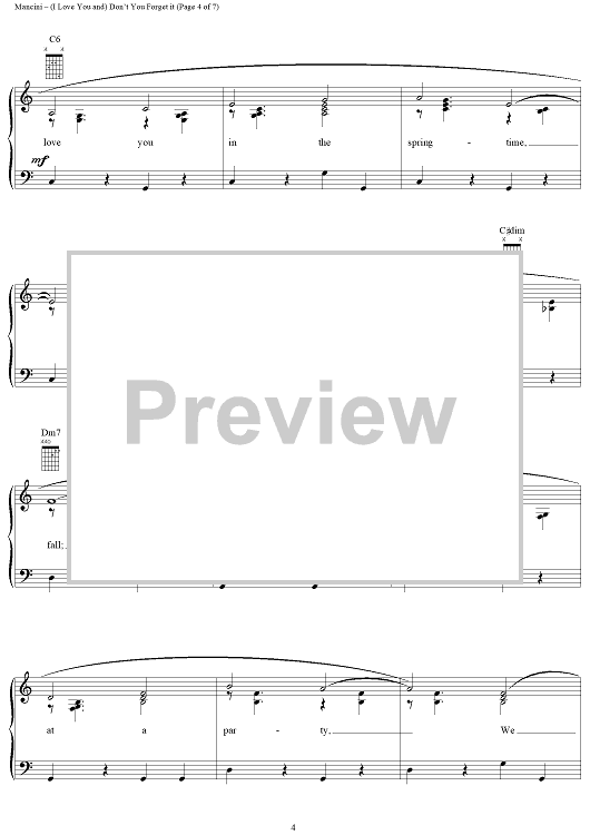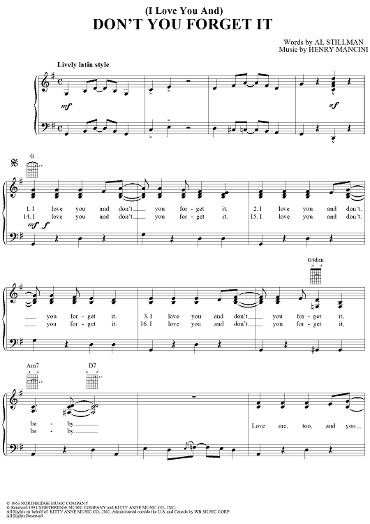 Digital Sheet Music for (I Love You And) Don't You Forget It by Henry Mancini, Sarah Vaughan, Perry Como, Al Stillman, Julie London scored for Piano/Vocal/Chords; id:251347
