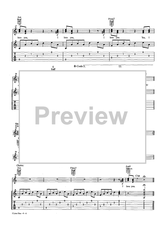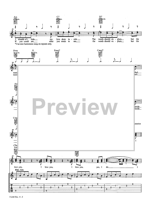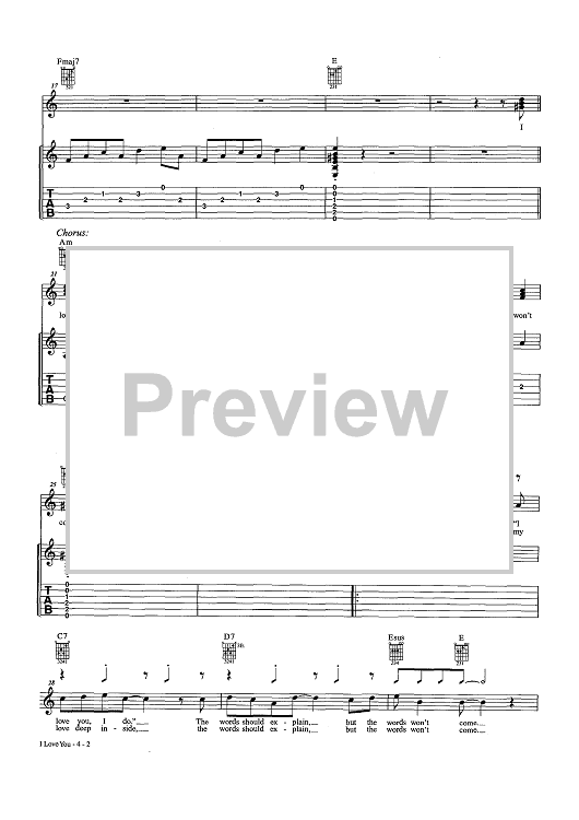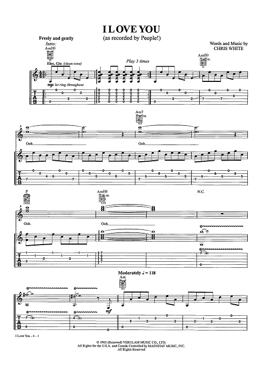 Digital Sheet Music for I Love You (as recorded by People!) by Chris White, People! scored for Easy Guitar Tab/Vocal/Chords; id:457212