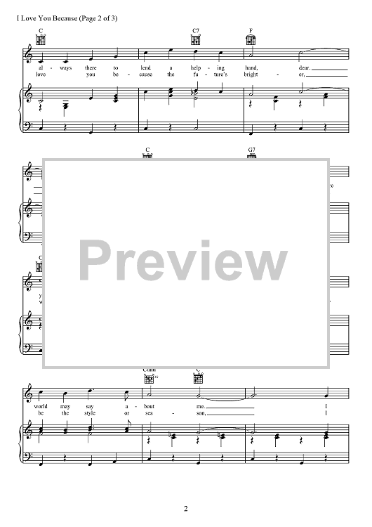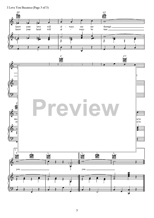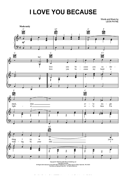 Digital Sheet Music for I Love You Because by Jim Reeves, Leon Payne scored for Piano/Vocal/Chords; id:467774