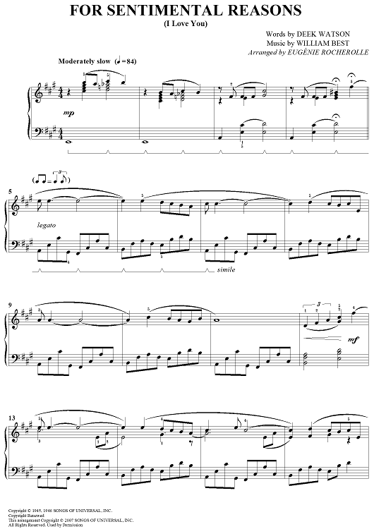 Digital Sheet Music for (I Love You) For Sentimental Reasons by Deek Watson, William Best, Eugénie R. Rocherolle scored for Piano Solo; id:397486