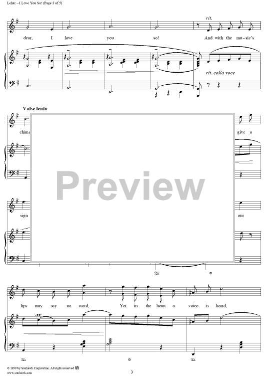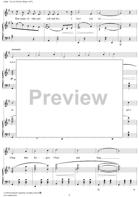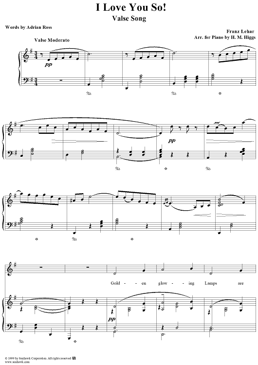 Digital Sheet Music for I Love You So by Franz Lehár scored for Piano Solo; id:262771