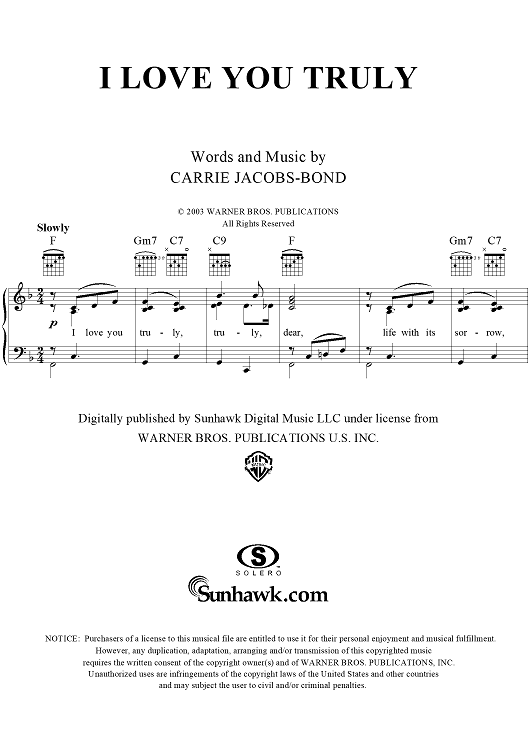 "I Love You Truly" Sheet Music by Carrie Jacobs-Bond