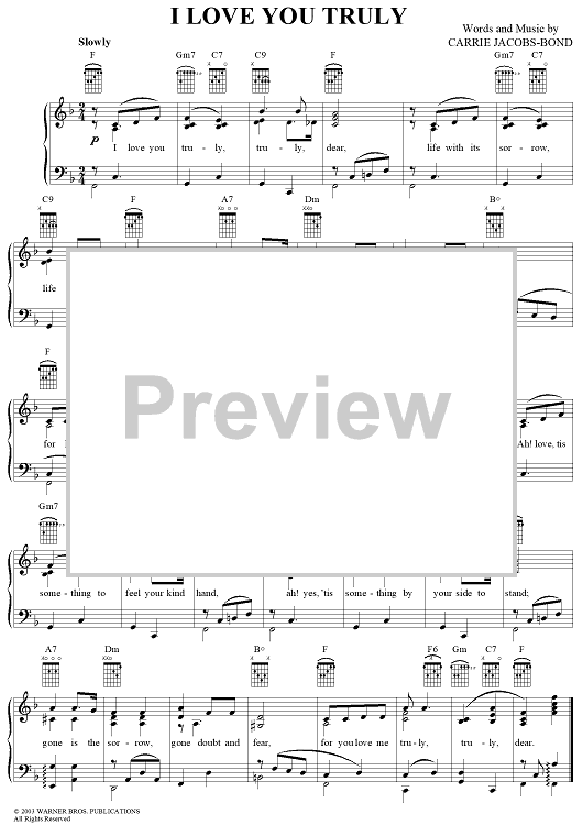 Digital Sheet Music for I Love You Truly by Carrie Jacobs-Bond scored for Piano/Vocal/Chords; id:295104
