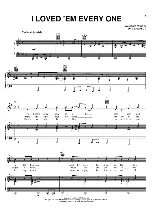 Digital Sheet Music for I Loved 'Em Every One by Phil Sampson, T.G. Sheppard scored for Piano/Vocal/Chords; id:386505