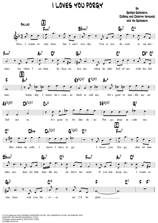 Digital Sheet Music for I Loves You Porgy by , George Gershwin, Ira Gershwin, Dubose & Dorothy Heyward scored for Lead Sheet; id:308343