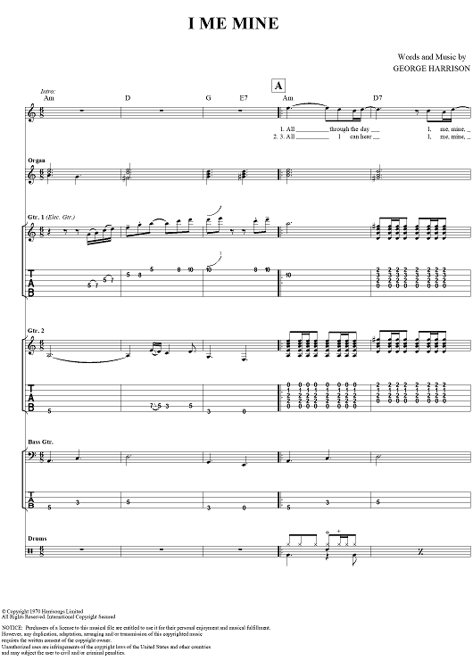 "I Me Mine" Sheet Music by The Beatles
