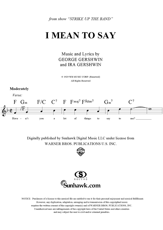 Digital Sheet Music for I Mean To Say by , George Gershwin, Ira Gershwin scored for Lead Sheet; id:283628
