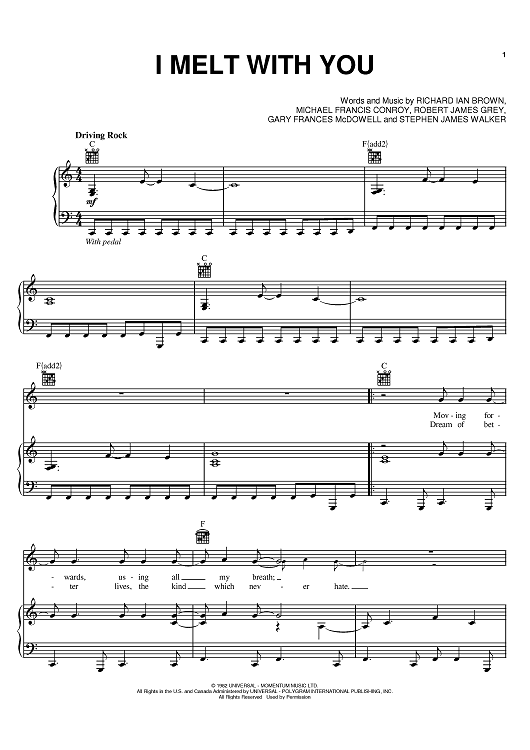 Digital Sheet Music for I Melt With You by Richard Ian Brown, Michael Conroy, Modern English, Robert James Grey, Jason Mraz scored for Piano/Vocal/Chords; id:374880