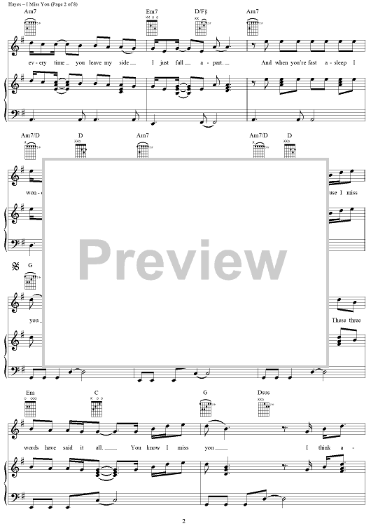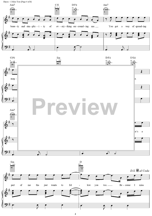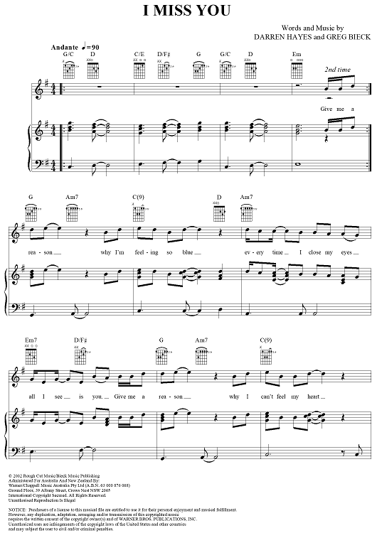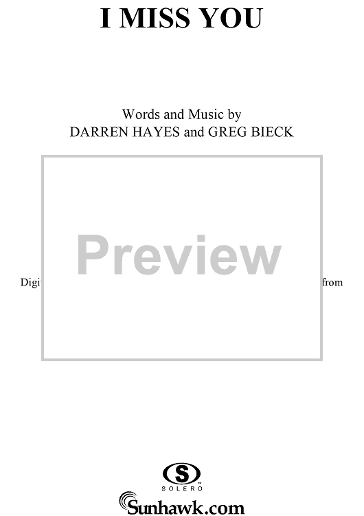 Digital Sheet Music for I Miss You by Darren Hayes, Greg Bieck scored for Piano/Vocal/Chords; id:293431