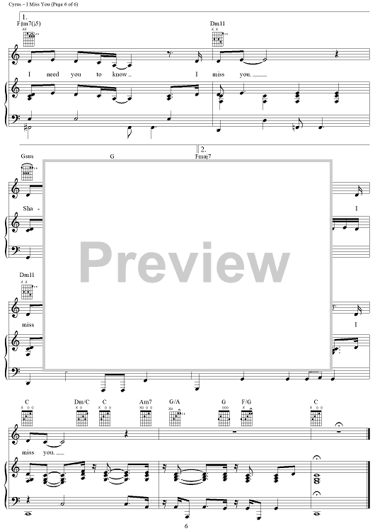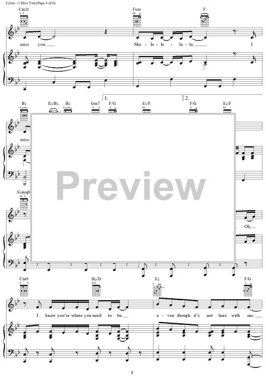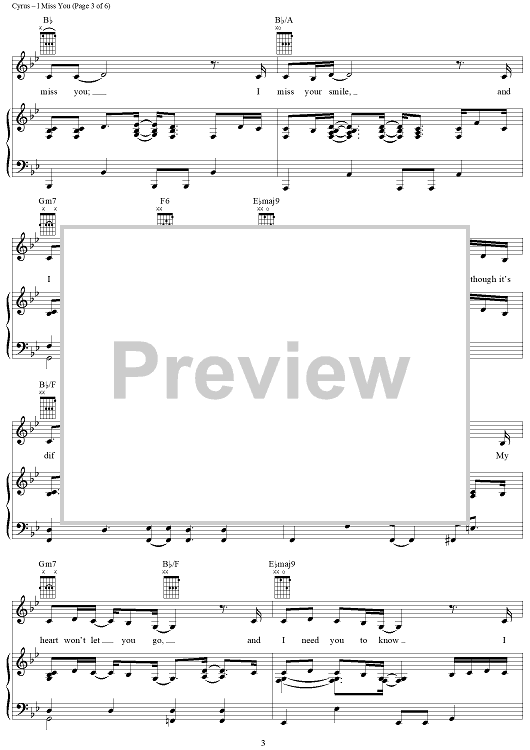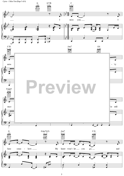 Digital Sheet Music for I Miss You by Wendi Foy Green, Hannah Montana, Miley Cyrus, Brian Green scored for Piano/Vocal/Chords; id:367000