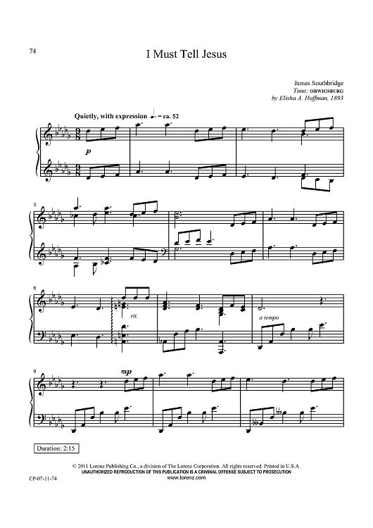 "I Must Tell Jesus" Sheet Music by Elisha A. Hoffman