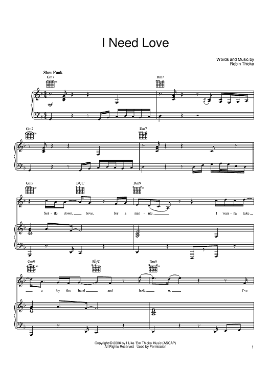 "I Need Love" Sheet Music by Robin Thicke