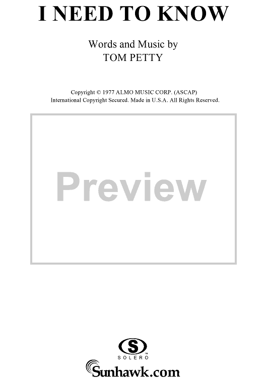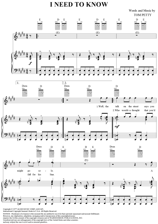 "I Need to Know" Sheet Music by Tom Petty and The Heartbreakers