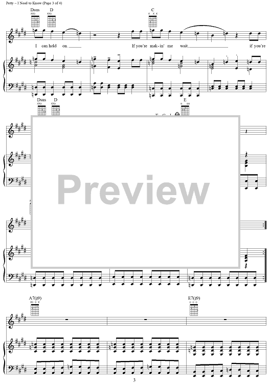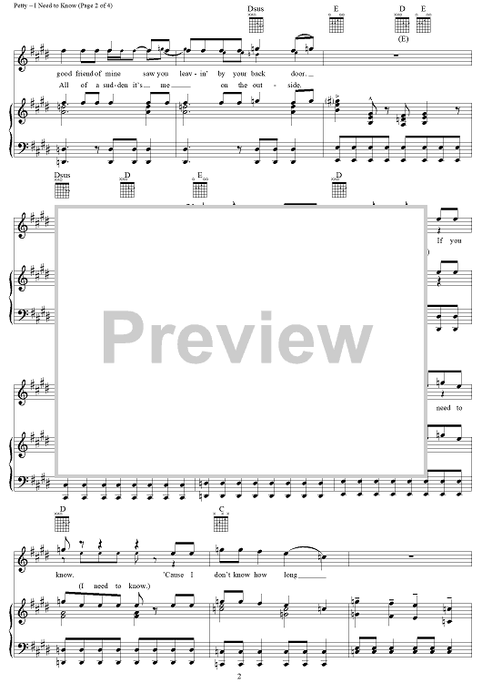 Digital Sheet Music for I Need to Know by Tom Petty, Tom Petty and The Heartbreakers scored for Piano/Vocal/Chords; id:254094