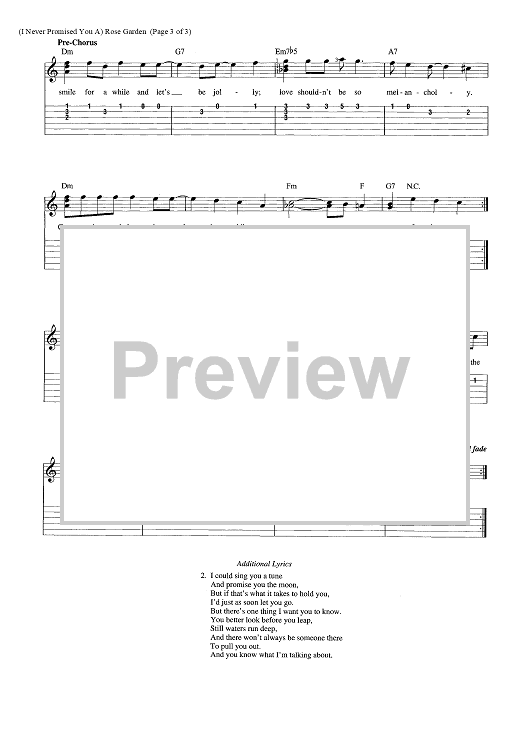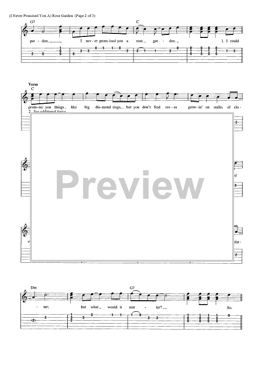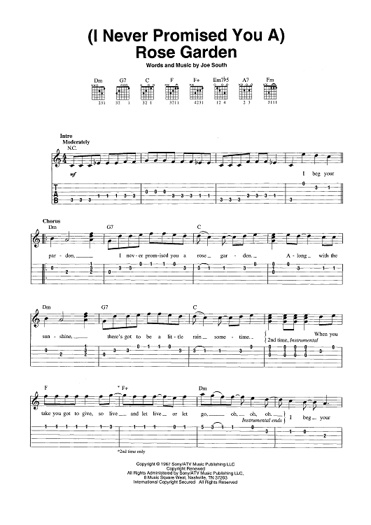 Digital Sheet Music for (I Never Promised You A) Rose Garden by Joe South, Lynn Anderson scored for Easy Guitar Tab/Vocal/Chords; id:456753