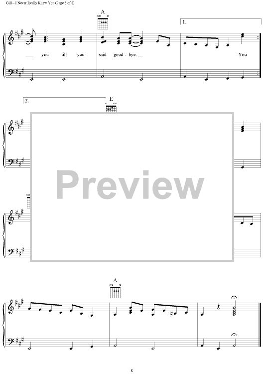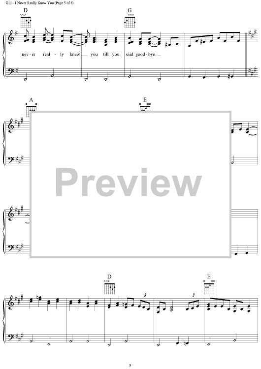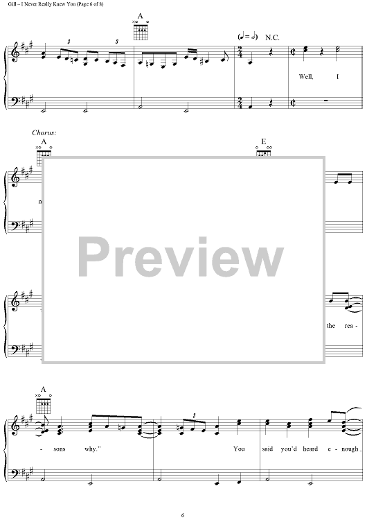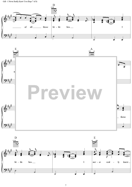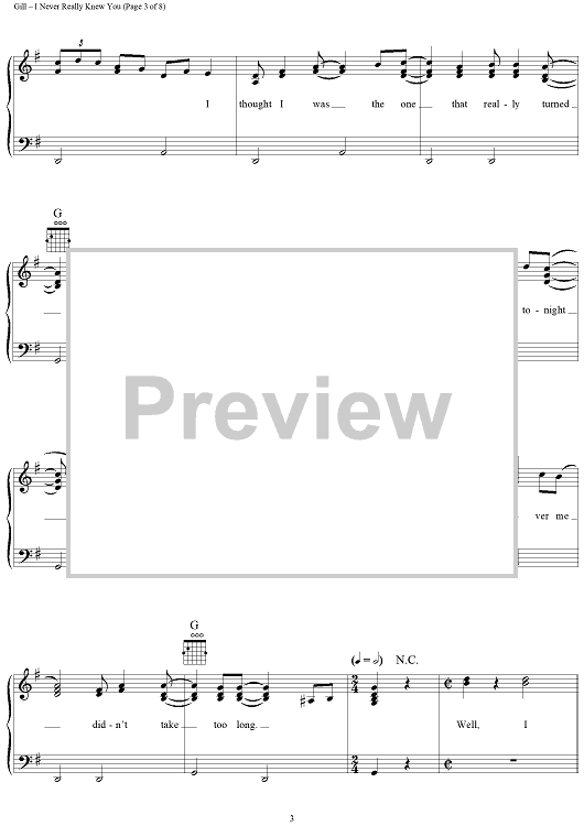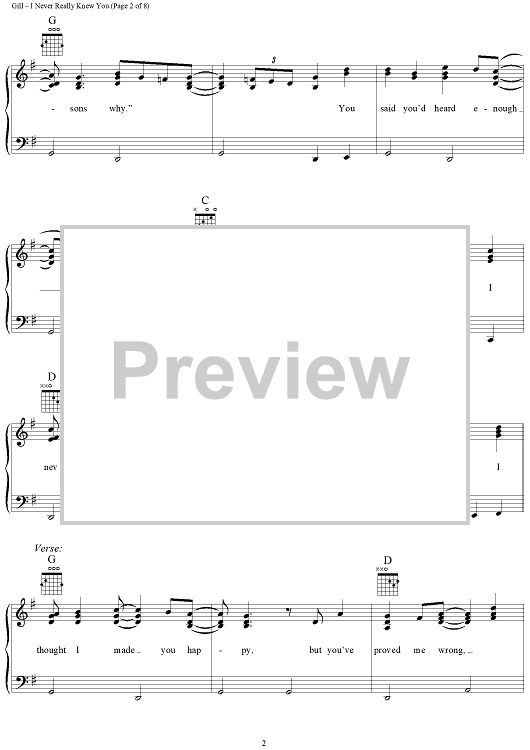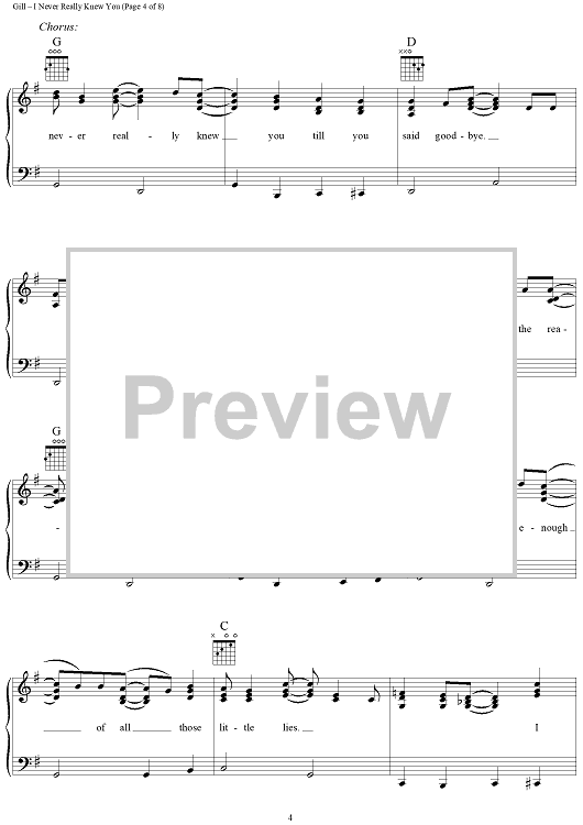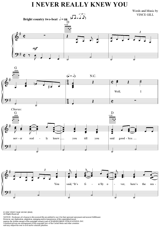 Digital Sheet Music for I Never Really Knew You by Vince Gill scored for Piano/Vocal/Chords; id:268508