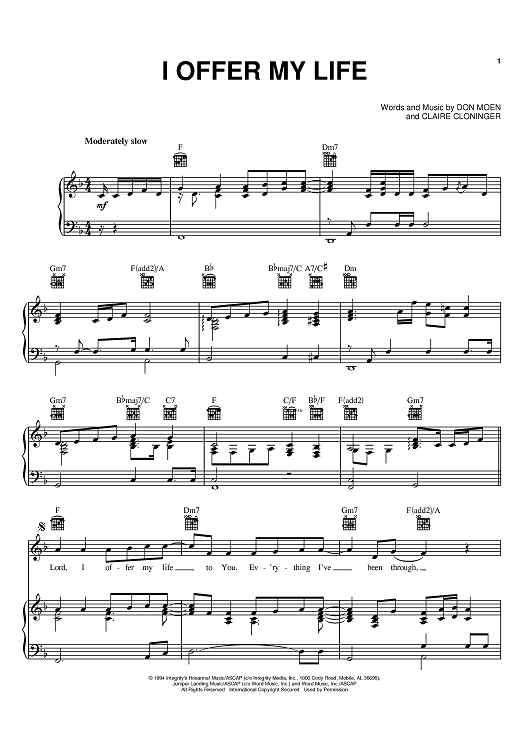 Digital Sheet Music for I Offer My Life by Claire Cloninger, Don Moen scored for Piano/Vocal/Chords; id:372123