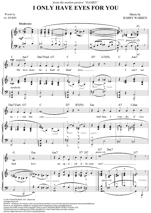Digital Sheet Music for I Only Have Eyes for You by Frank Sinatra, Harry Warren, Al Dubin, Jerry Butler, The Lettermen, The Flamingos, Art Garfunkel scored for Piano/Vocal/Chords; id:111941