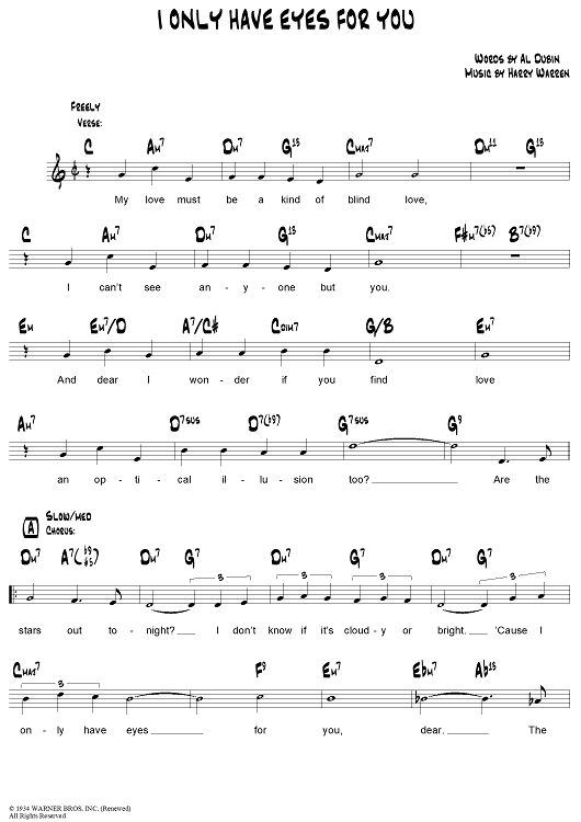 Digital Sheet Music for I Only Have Eyes for You by Harry Warren, Al Dubin, The Lettermen, Eddy Duchin scored for Lead Sheet; id:312227