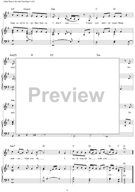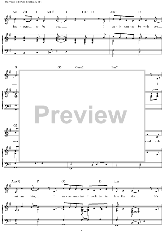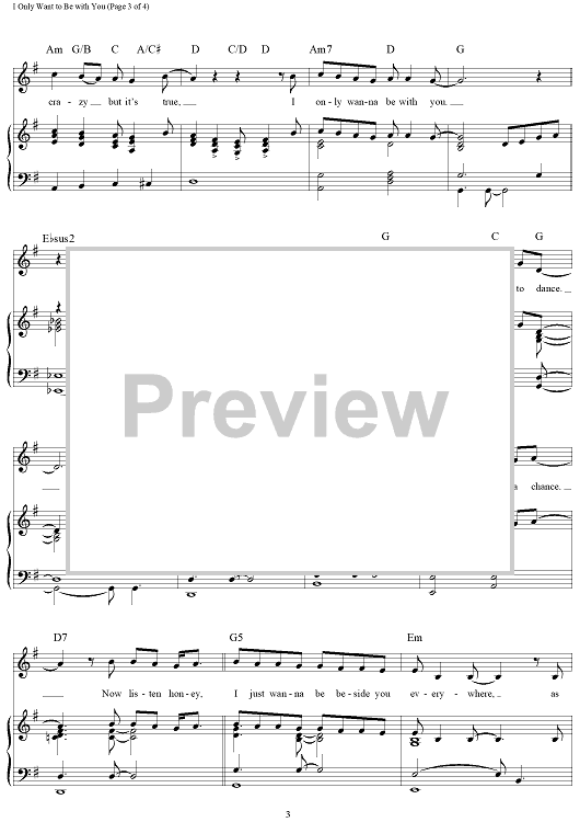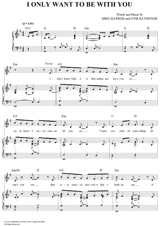 Digital Sheet Music for I Only Want to Be with You by Vonda Shepard, Dusty Springfield, Mike Hawker, Ivor Raymonde scored for Piano/Vocal/Chords; id:235394