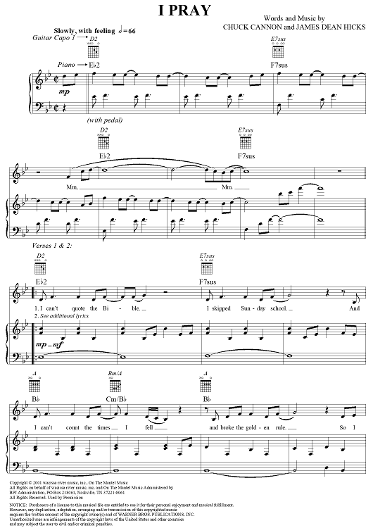 Digital Sheet Music for I Pray by Lonestar, James Dean Hicks, Chuck Cannon scored for Piano/Vocal/Chords; id:304287