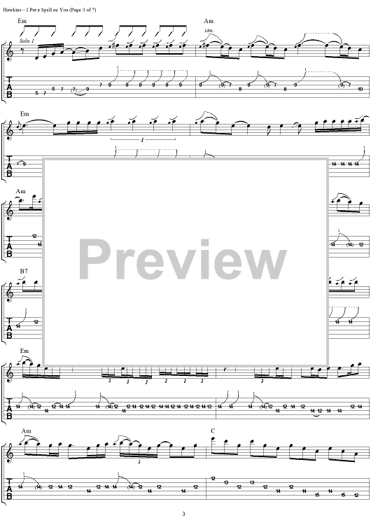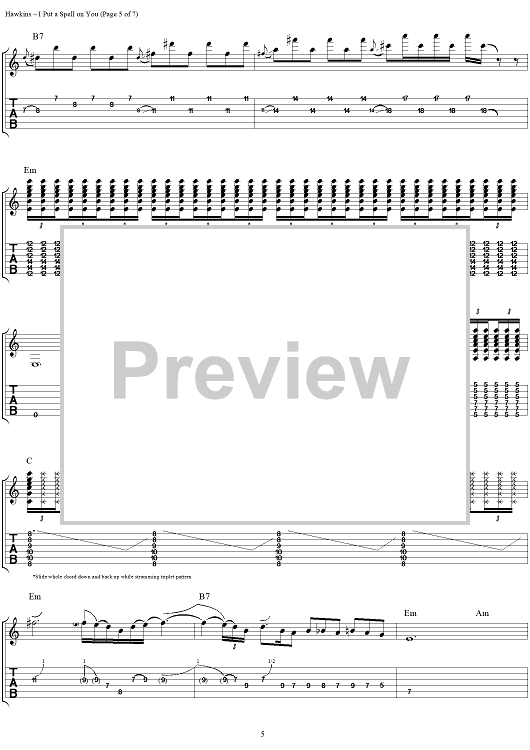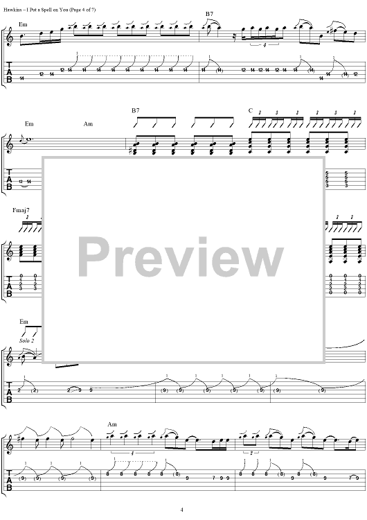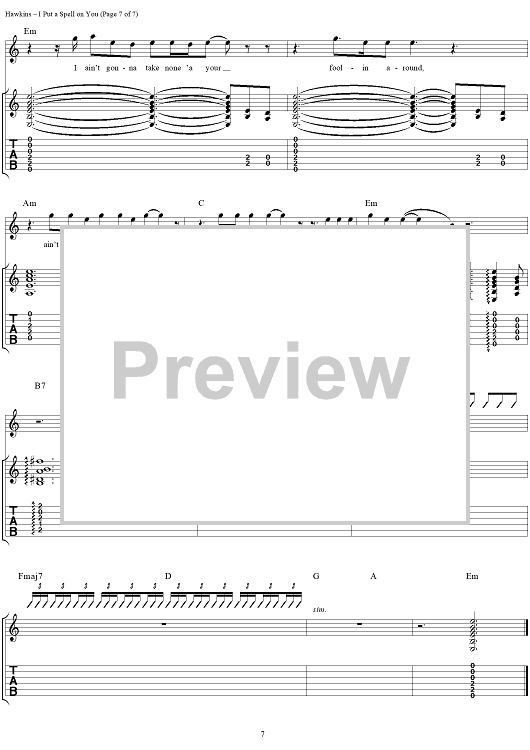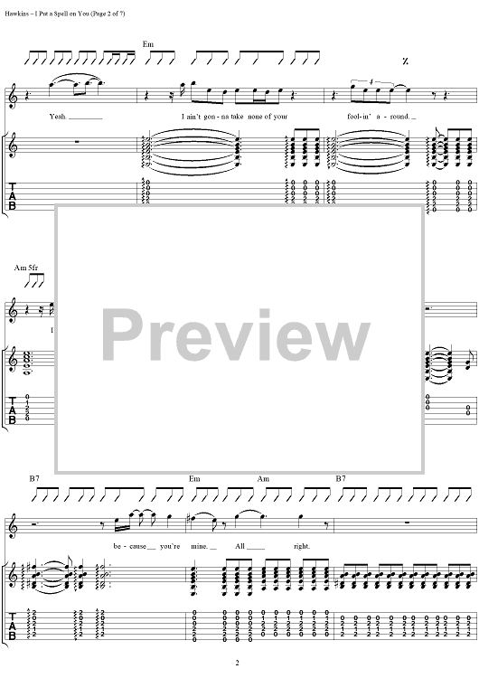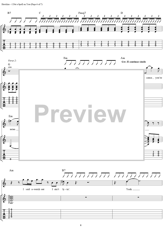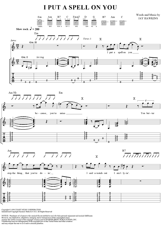 Digital Sheet Music for I Put a Spell On You by Screamin' Jay Hawkins, Creedence Clearwater Revival scored for Guitar Tab/Vocal; id:124173