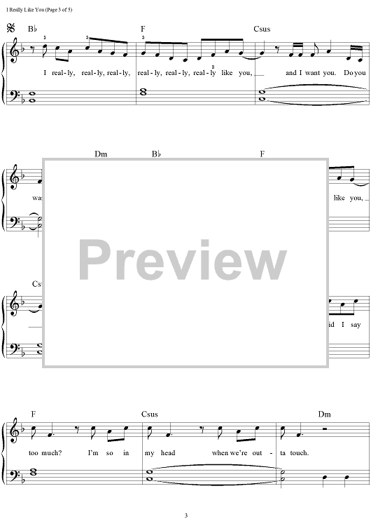 Digital Sheet Music for I Really Like You by Max Martin, Peter Svensson, Jacob Kasher, Carly Rae Jepsen scored for Easy Piano/Vocal/Chords; id:469011