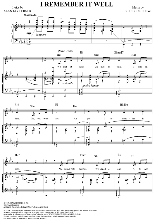 "I Remember It Well" Sheet Music by Frederick Loewe