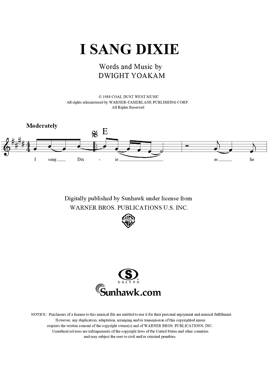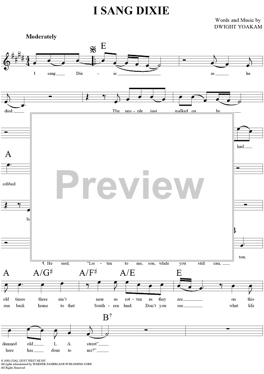 "I Sang Dixie" Sheet Music by Dwight David Yoakam