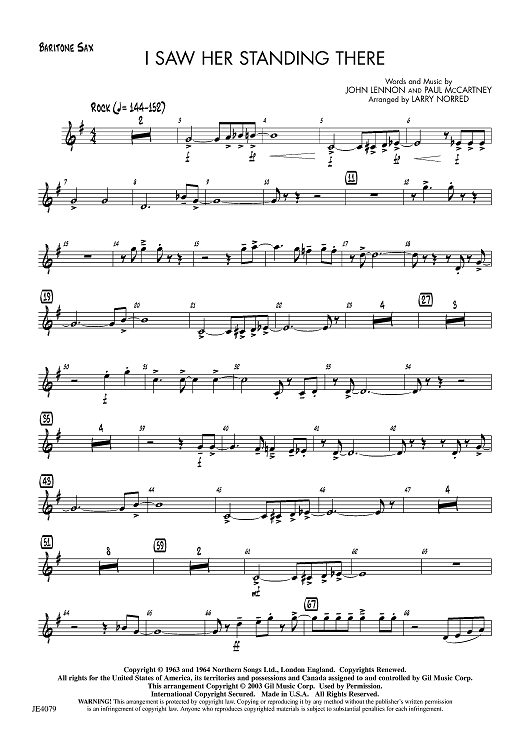 Digital Sheet Music for I Saw Her Standing There - Baritone Sax by Paul McCartney, John Lennon, Larry Norred scored for Jazz Ensemble; id:455779