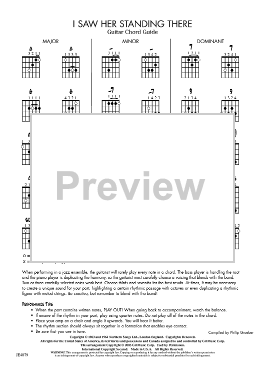 Digital Sheet Music for I Saw Her Standing There - Guitar Chord Guide by Paul McCartney, John Lennon, Larry Norred scored for Jazz Ensemble; id:455788