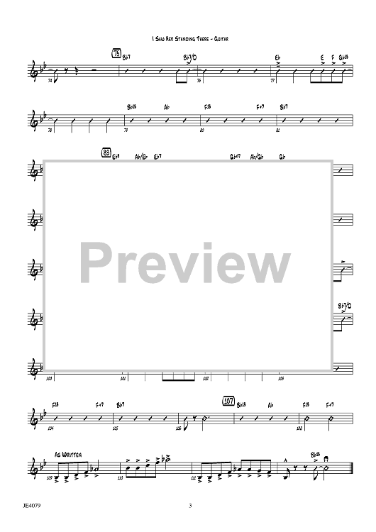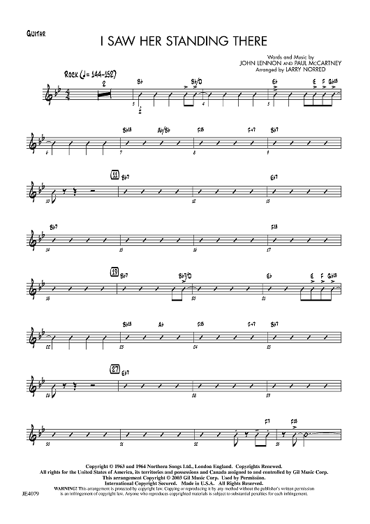 Digital Sheet Music for I Saw Her Standing There - Guitar by Paul McCartney, John Lennon, Larry Norred scored for Jazz Ensemble; id:455789