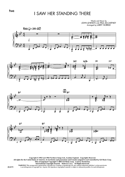 Digital Sheet Music for I Saw Her Standing There - Piano by Paul McCartney, John Lennon, Larry Norred scored for Jazz Ensemble; id:455790