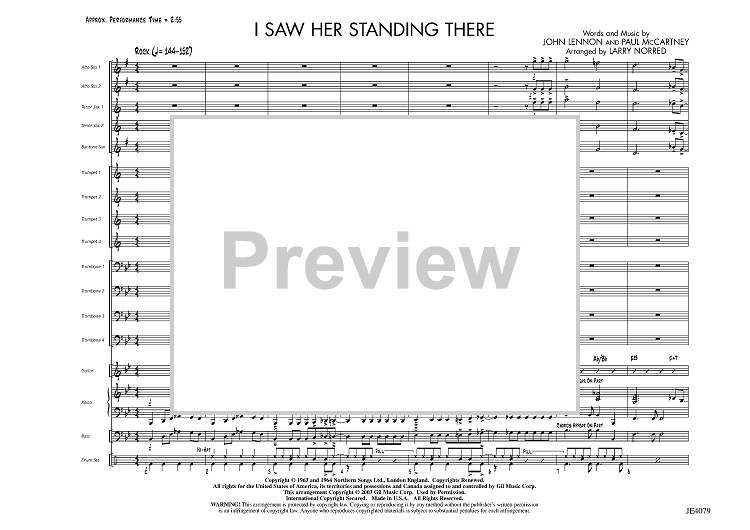 Digital Sheet Music for I Saw Her Standing There - Score by Paul McCartney, John Lennon, Larry Norred scored for Jazz Ensemble; id:455774
