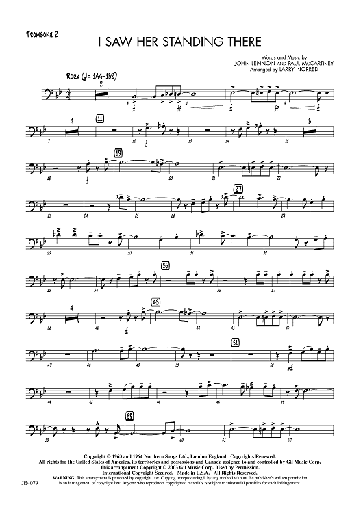 Digital Sheet Music for I Saw Her Standing There - Trombone 2 by Paul McCartney, John Lennon, Larry Norred scored for Jazz Ensemble; id:455785