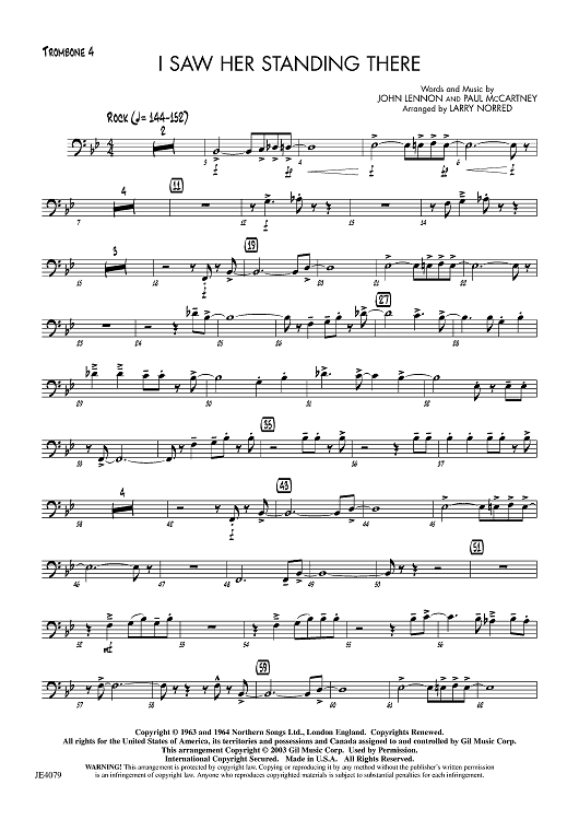 Digital Sheet Music for I Saw Her Standing There - Trombone 4 by Paul McCartney, John Lennon, Larry Norred scored for Jazz Ensemble; id:455787